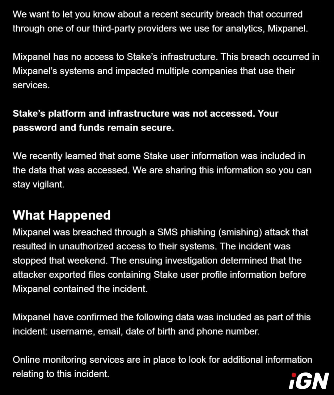 Stake Warns Players About Data Breach